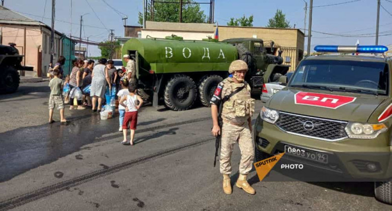 «Ռուսական խաղաղապահ զորախմբի հրամանատարությունը որոշում է կայացրել Ստեփանակերտ քաղաքի տեղական ինքնակառավարման մարմինների դիմումի կապակցությամբ խմելու ջրով ապահովել տեղի բնակչությանը: Կազմվել է ջրի ամենօրյա փոխադրման ժամանակացույց։ Այսօրվա դրությամբ շուրջ 10 տոննա խմելու ջուր է տրամադրվել տեղի բնակչությանը»,-ասել է ռուսական խաղաղապահ զորախմբի ներկայացուցիչ Վլադիսլավ Դեմկինը։