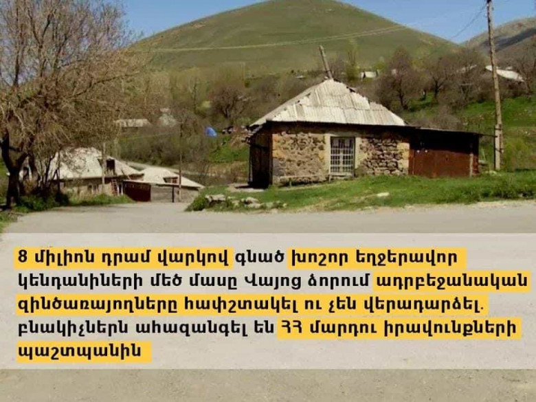 8 միլիոն դրամ վարկով գնած խոշոր եղջերավոր կենդանիների մեծ մասը Վայոց ձորում ադրբեջանական զինծառայողները հափշտակել ու չեն վերադարձել․ ահազանգ ՀՀ ՄԻՊ-ին