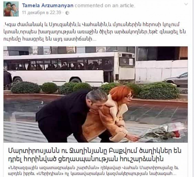 Արամ Սարգսյանը իր ֆեյսբուքյան էջում գրում է.