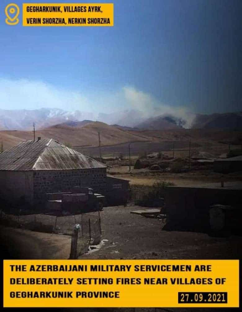 Շուրջ 1 ամիս առաջ ադրբեջանական զինվորականները նույն կերպ հրդեհներ էին գցել Գեղարքունիքի գյուղերի (Կութ, Վերին Շորժա, Սոթք և այլն) հարևանությամբ: Խոսքն այնպիսի բարձրադիր վայրերի մասին է, որտեղ մարդիկ հրշեջ-փրկարար ծառայողների հետ միասին ստիպված էին նաև ձեռքով են մարել կրակը, իսկ ադրբեջանական զինվորականներ զուգահեռ առաջացնում էին հրդեհների նոր օջախներ: