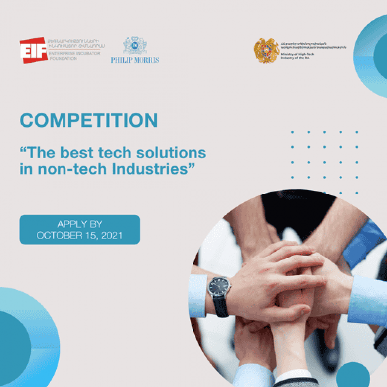 We are happy to announce the launch of the “Best tech ideas and solutions in non-tech” competition which is implemented by the Enterprise Incubator Foundation and Philip Morris Armenia in partnership with the Ministry of High-Tech Industry of the RA.