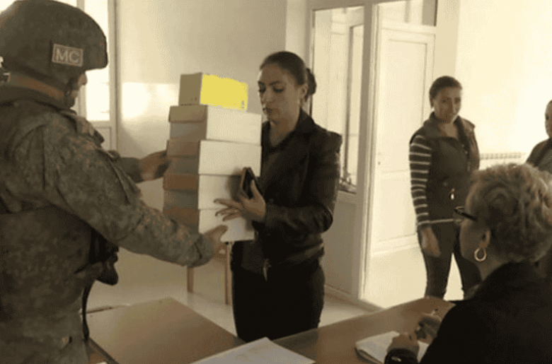 Հաղորդվում է, որ հումանիտար բեռը Ռուսաստանից Լեռնային Ղարաբաղ է տեղափոխվել ռուսական խաղաղապահ զորակազմի ուժերով: Զորակազմի մասնագետները տեղական վարչակազմերի հետ համակարգելով կազմել են կարիքավորների ցուցակներն ու օգնություն տրամադրել նրանց: