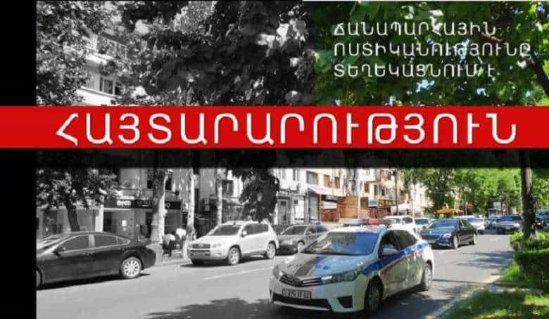 ՀԱՍԱՐԱԿՈՒԹՅՈՒՆՏրանսպորտային միջոցների երթևեկության հապաղումներից և հնարավոր խցանումներից խուսափելու նպատակով 2021 թ. նոյեմբերի 4-ին Երևան քաղաքի Սեբաստիայի և Կուրղինյան փողոցների խաչմերուկում կկատարվի երթևեկության կազմակերպման փոփոխություն: Այս մասին հայտնում են Ճանապարհային ոստիկանությունից: