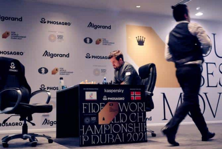 Դուբայում մեկնարկած շախմատի աշխարհի չեմպիոնի համարմրցախաղում գործող չեմպիոն Մագնուս Կալրսենը սևերով մրցեց ռուս Յան Նեպոմնյաշչիի հետ:Պարտիայի 45-րդ քայլին գրոսմայստերները համաձայնել են ոչ-ոքի արդյունքի:
