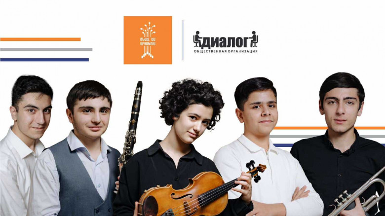 The DIALOG scholarship recipients are displaced young musicians from Artsakh: Arsen Safaryan (18, trumpet), Edward Sargsyan (18, piano), Alexandra Hayrapetyan (18, violin), Roman Avanesyan (15, clarinet), Vladimir Galstyan (15, piano).
