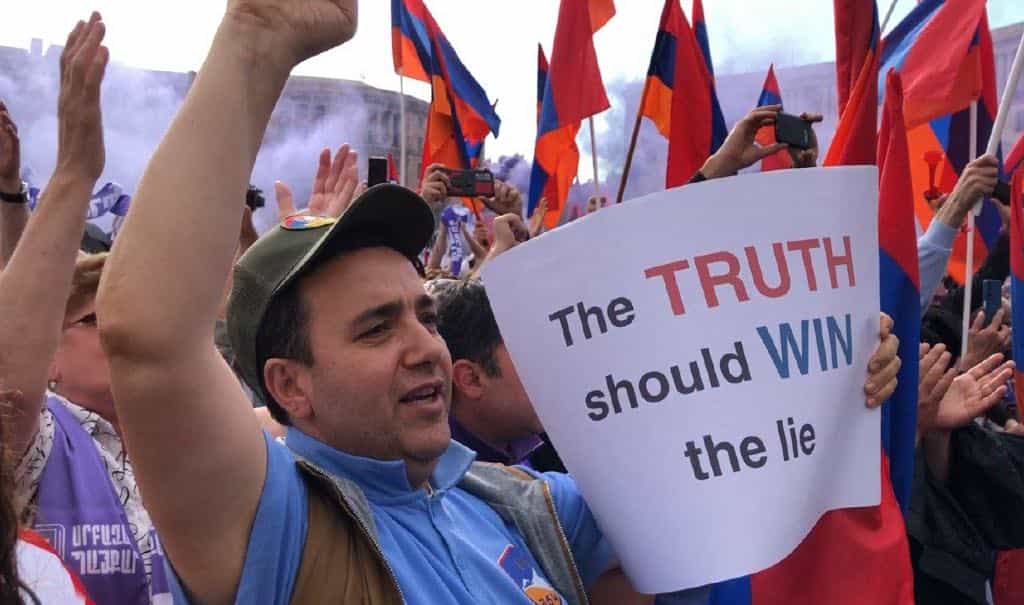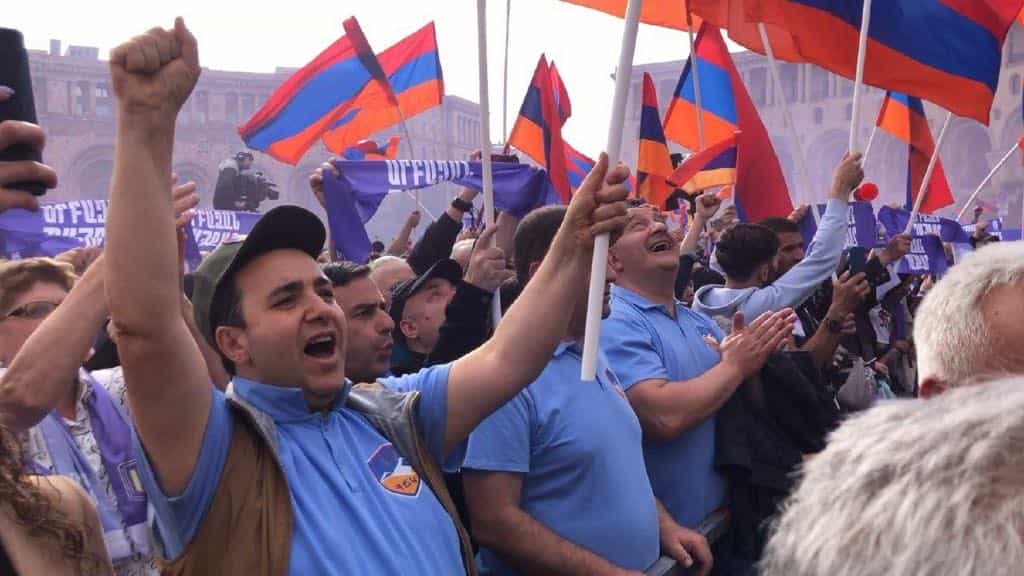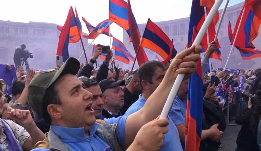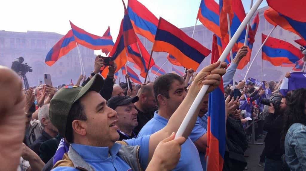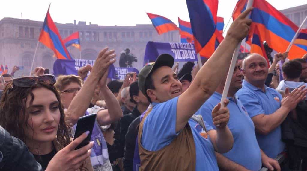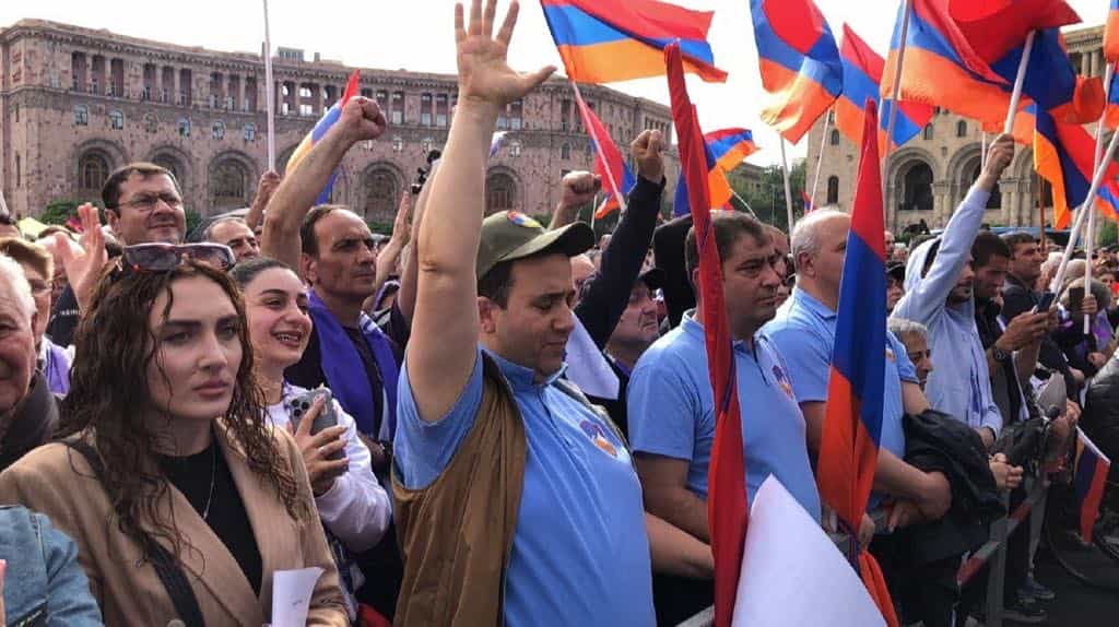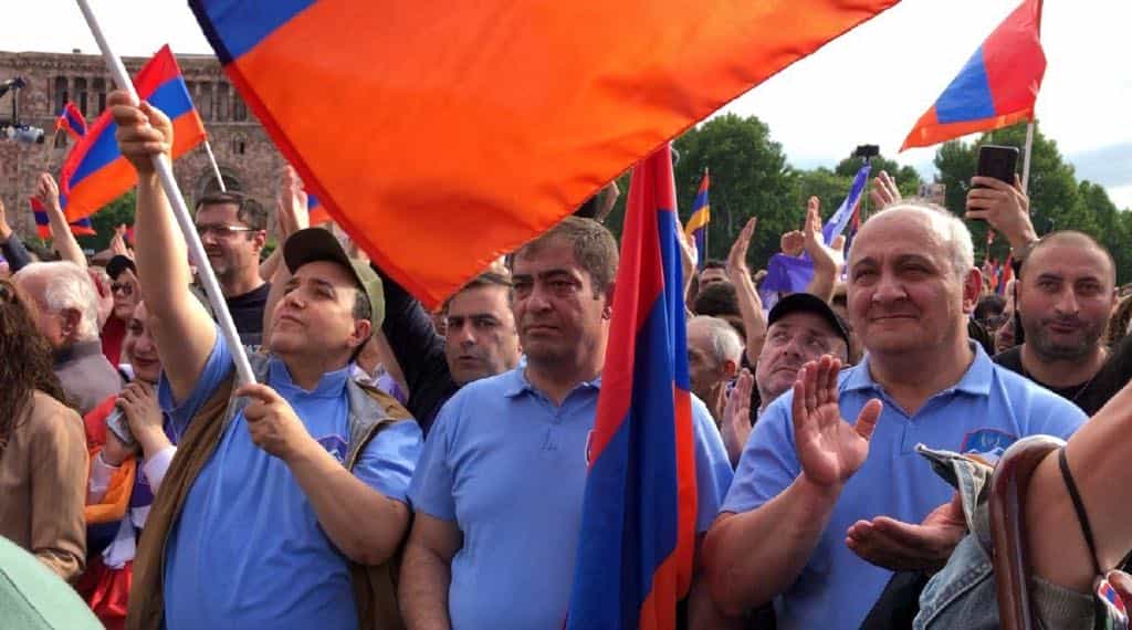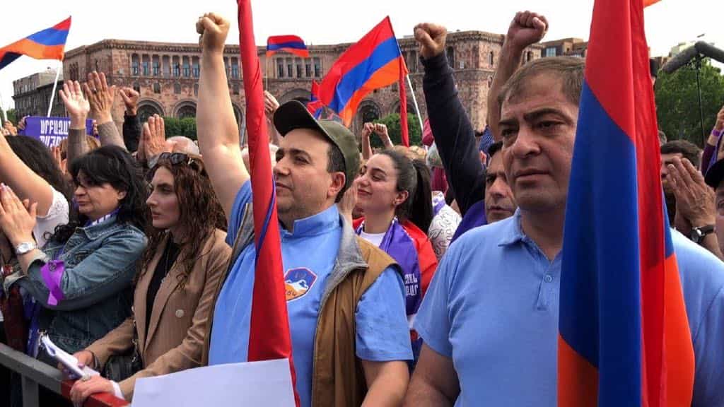 Члены и сторонники движения «Всеармянский фронт» на митинге протеста 26 мая: фото