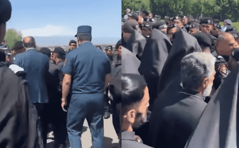 Днем, когда Католикос прибыл к мемориалу Сардарапат с сопровождающей его свитой, его опередили полицейские черные и красны береты, которые запретили священнослужителям подниматься к мемориалу. Священнослужители прорвали полицейскую цепь, поднялись, вознесли молитву, но вскоре ушли, когда представители действующей власти заявили им, что их участие в торжественной церемонии не считают целесообразным.