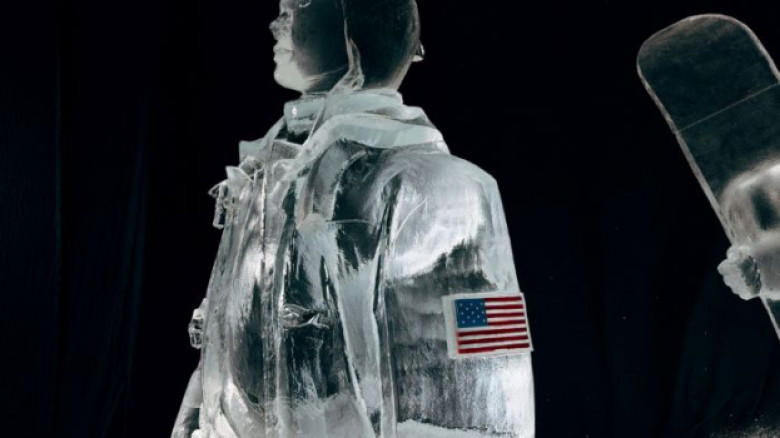 Скульптура высотой около 3,7 метров создавалась из 10 метрических тонн льда, изображая спортсменов в парадной форме Team USA от Ralph Lauren для церемоний открытия и закрытия Олимпиады. Пять мастеров-резчиков и чемпионы мира по ледовой скульптуре работали над установкой в течение пяти дней в студии в Сиракузах, Нью-Йорк, после чего её аккуратно транспортировали в Манхэттен. Прогноз погоды обещает температуру ниже нуля на следующие девять дней, поэтому ледяной монумент не растает.