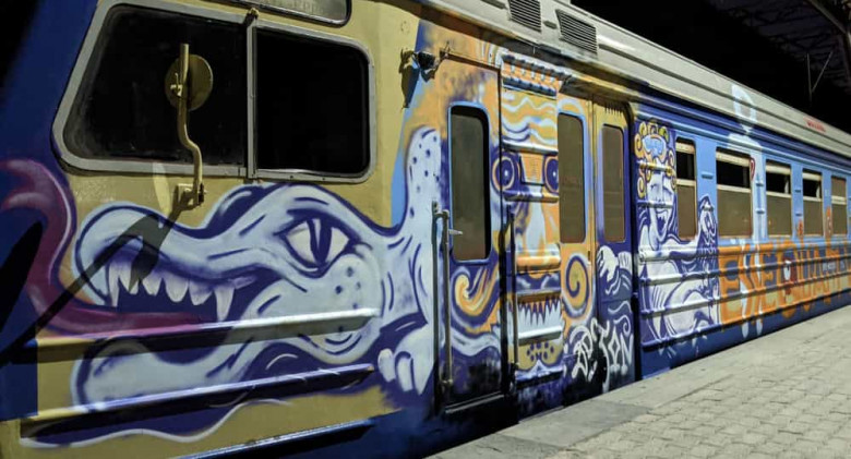 Один из вагонов поезда ЮКЖД Ереван–Гюмри отныне будет отличаться от других своими яркими цветами и интересным граффити. Как стало известно Sputnik Армения, вагон оформили известный армянский фотограф Арег Балаян и гость Армении немецкий художник Юлиан Момбоис.